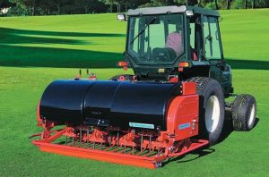Recomiendo este método para suelos muy compactados, que puedan tener piedras y una aireadora tradicional no penetre fácilmente. Éstas máquinas también pueden equiparse con una tolva para arena, que, por gravedad, hará el retape sobre los cortes para mejorar el drenaje.