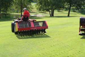 Los superintendentes que opten por brocas sólidas en el campo de golf, deberían añadir un paso de verticorte con su respectivo retape. Su césped lo agradecerá y los canales que usted hace con los tines largos, harán una “chimenea” permanente de arena, permitiendo al agua y las raíces penetrar con facilidad.